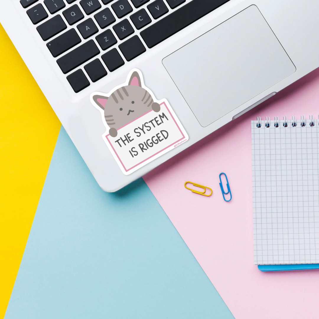 "The System is Rigged" Kitty Cat Vinyl Sticker